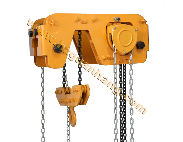通過特定的設計能使重物上升至離固定處最近,實現單軌小車及手拉葫蘆的超低空組合,特別適用于受空間限制的設備安裝及維修場合,此外低凈空手拉葫蘆還具有自重輕,手拉力小,經濟實用等顯著特點。